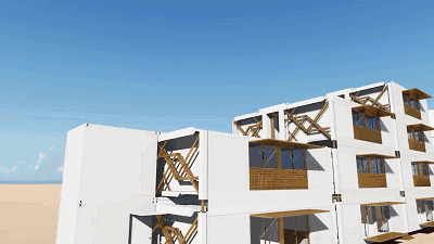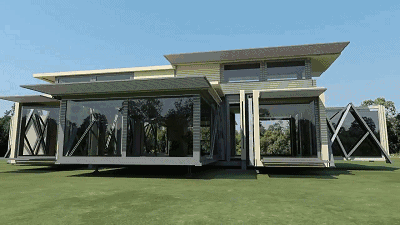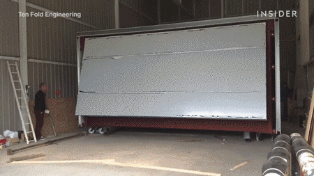 只需10分钟的变形过程,就可拥有一套自己的可折叠移动豪宅,住房成本还会这么高吗?它的名字叫 Ten Fold,是由英国Ten Fold Engineering公司的工程师开发的一套模块化房屋。该模块可以通过其强有力的折叠弹簧,利用杠杆原理自动打开并且部署房屋结构,从展开到折叠,再到升降,整个过程只需要不到10分钟。