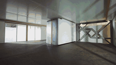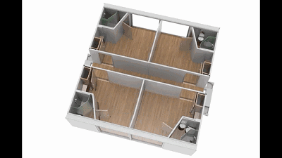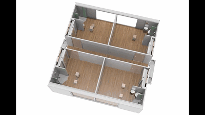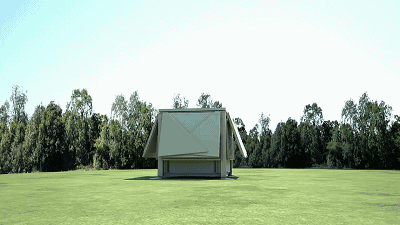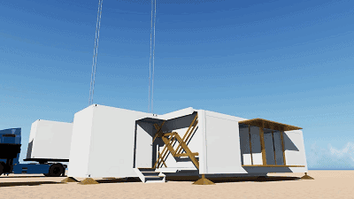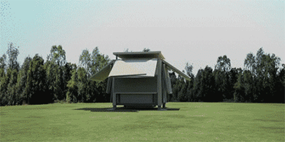 无需房屋建筑商介入,也无需打任何地基,收缩成卡车车厢大小的单元箱完全展开后,将会形成一个大于本身体积三倍左右的小型房屋,拥有者仅需一个小扳手,就能轻松将房子进行组合包装或拆开。当需要移动房屋时,屋内预先安装的必要配件和装置只需对其进行折叠即可移动位置。