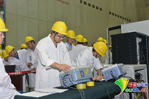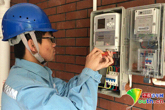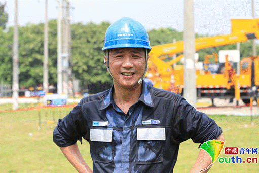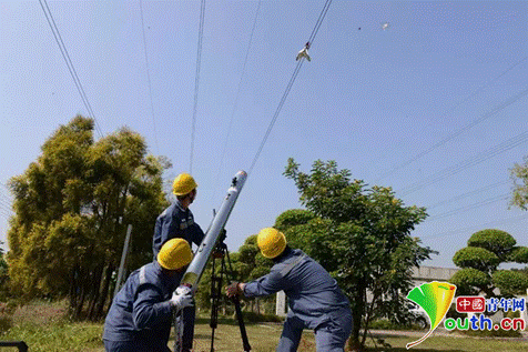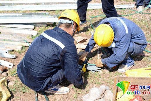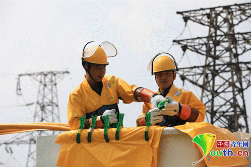 在烈日下不顾汗水的电力工作者。中国青年网 罗振兴摄