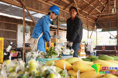 中山坦洲生态果园园区供电可靠,果农喜获丰收。5月22日,在园区巡视检查电力设施的运维班班员帮助果农搬运丰收的水果。