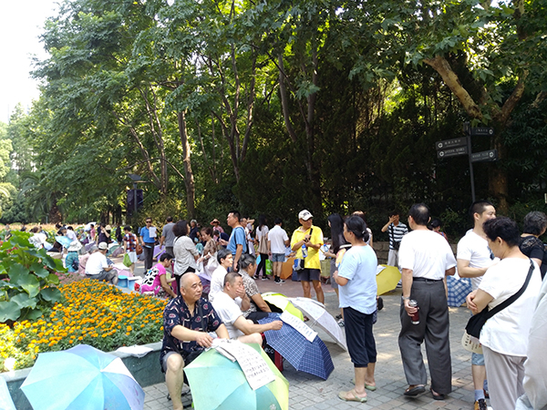 “家长内心的焦灼比太阳的温度还要高。”罗书寰坐在树荫下,止不住地冒汗。说这句话时,他望了望几米远处的一排伞和低头看伞上征婚信息的家长们,面色戚戚,“你看看这些人,都是可怜天下父母。”