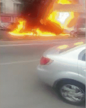 / 汽车瞬间变火团!