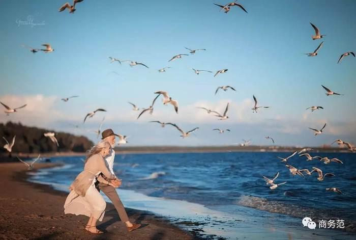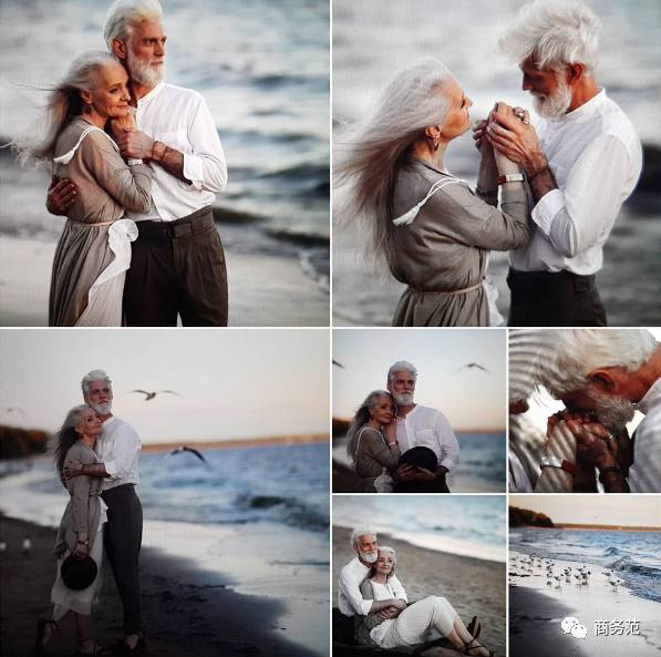 两位白发苍苍,却又非常优雅时尚的老人,在海边拍摄了一组温馨浪漫的照片,由俄罗斯女摄影师Irina Nedyalkova掌镜。
