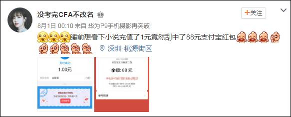 支付宝官方说,会有88元、888元、4888元的红包出现。然而快报君3次都只有0.88元……