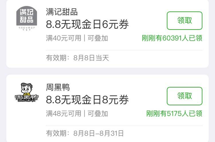 除了直接送钱,微信支付还送优惠券:星巴克、吉野家、满记甜品、周黑鸭这些,还挺实用的。