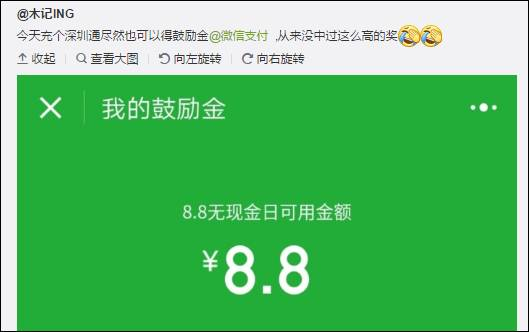 这次“无现金日”只是是把这个活动升级了一哈:1-8日这几天,领到的是奖励金plus:更大、更多。