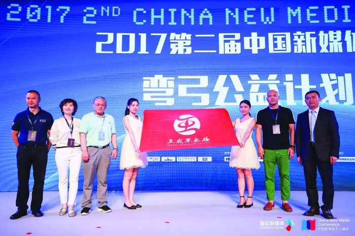 “2017 第二届中国新 媒体千人峰会”上,王战军以新一代太极拳领军人物的身份带领多人在 太极拳申遗旗帜上签下名字。