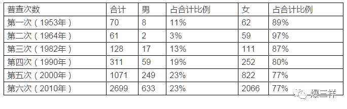 其中,女性在100岁及以上中占比高达87%(见表一)。在山东省17个市,在100岁及以上中都是女性远远多于男性。女性占比从77%到90%不等(见表二)。从六次人口普查数据看,山东省100岁及以上人口都是女性远远多于男性(见表三)。