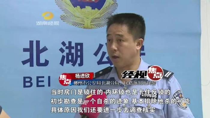 目前, 初步断定蒋先生为自杀身亡,郴州市公安局北湖分局正在进一步调查此案。