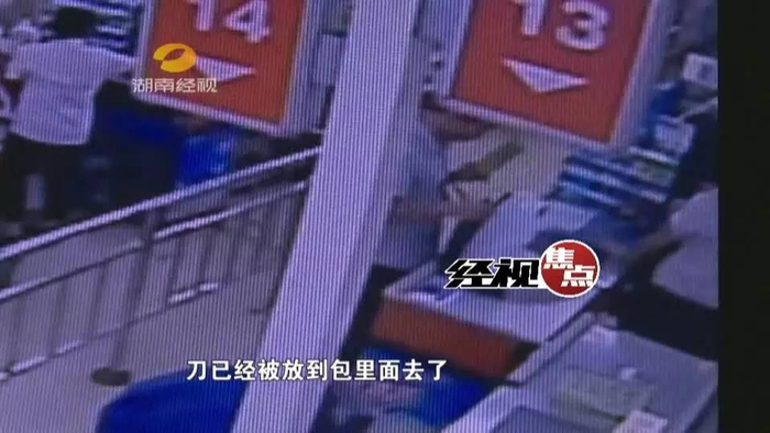 除酒店监控外,郴州市刑侦大队对周边监控都进行查看后,在30号下午4点53分左右发现了蒋某还出现在酒店旁的一家超市,买了一把刀和一个西瓜。