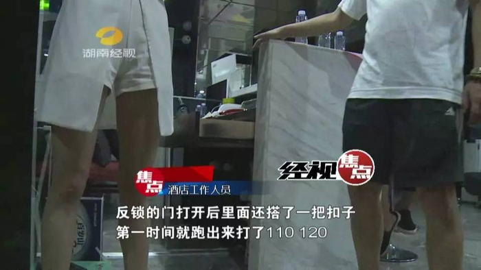 酒店工作人员说,他们当时发现蒋先生的房间被反锁,察觉异样后赶紧报警。郴州市公安局北湖分局刑侦大队、人民路派出所当即对现场展开侦查,而酒店的监控也记录下来了当时蒋某进入酒店的过程。