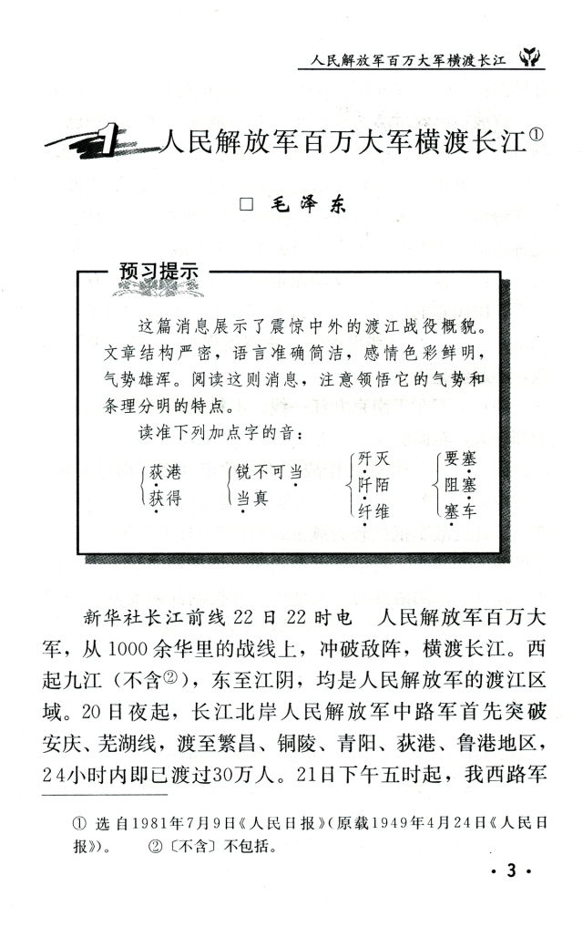 《人民解放军百万大军横渡长江》丨那些年,我们一起读过的课文
