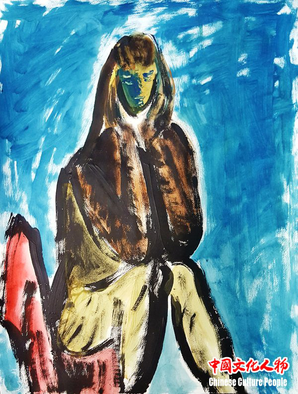 彩色空间中的人物 52 × 70 cm 纸上蛋彩 Jens Kilian(严思·克利安)作品