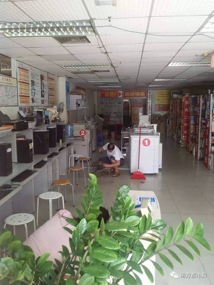 7月中旬,正值暑假。广州华南师范大学大学城校区后勤综合楼二楼的大部分复印店已经关闭,“校友快印”仍然保持着正常营业状态。中长型的店面被平均分割成了两块,湖南人曾四文的校友快印店在左边,六台电脑靠墙壁整齐摆放,各式机器则在后面依次排列。