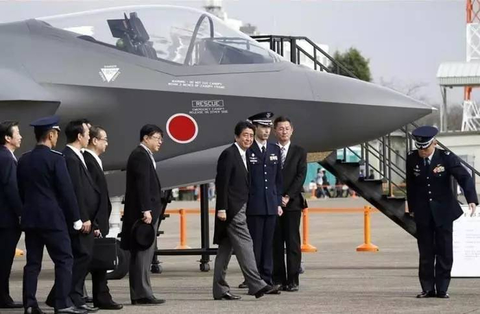 ▲资料图片:2014年10月26日,日本首相安倍晋三出席自卫队成立60周年航空阅兵式,并参观了F-35战机模型。