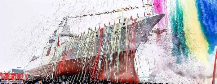 ▲资料图片:6月28日,中国海军055型驱逐舰首舰下水仪式在上海江南造船(集团)有限责任公司举行。