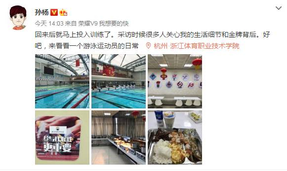 @孙杨全国粉丝后援团:金牌的背后是无数付出与汗水,杨哥辛苦啦,刚回来就投入训练,我们会一直在,加油!