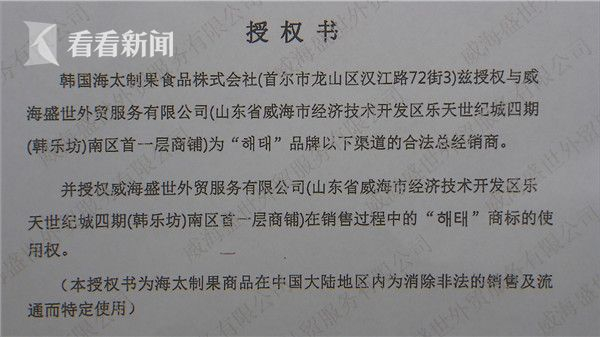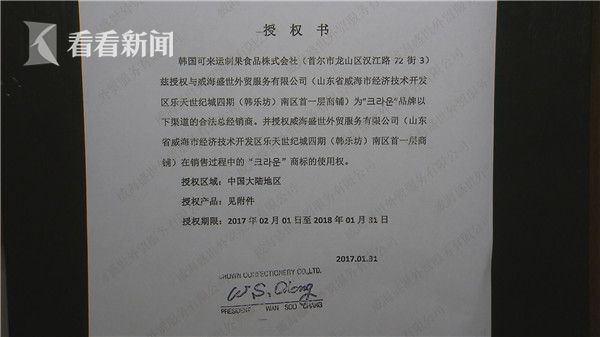 而盛世外贸则向记者发来了两款产品授权书的复印件,并表示以前进口渠道多样,韩国饼干可来运和可瑞安只是译名不同,不过今年2月,他们已成为中国大陆的总经销商,而且拥有相应商标的使用权。