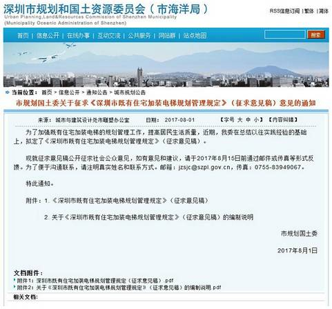 为了加强既有住宅加装电梯的规划管理工作,提高居民生活质量,近期,深圳市规土委在总结以往实践经验的基础上,拟定了《深圳市既有住宅加装电梯规划管理规定》(征求意见稿)。