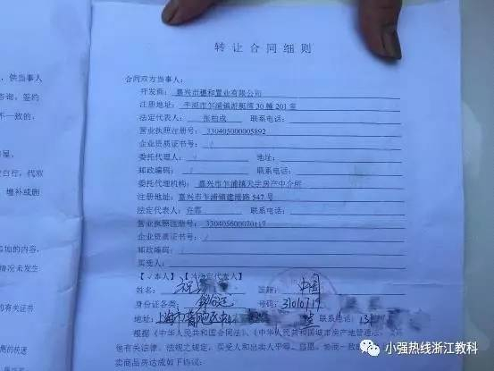 来到东方巴黎小区,中介表示,他没有要出售的那套房子的钥匙,就带祝阿姨看了隔壁的一间房子,说是结构一模一样。祝阿姨没有多想,觉得房子很不错,便有了购买的意向。于是中介拿出了这份房屋转让合同,在合同中写着,开发商是嘉兴市穗和置业有限公司,委托代理机构是中介所在的公司嘉兴市乍浦镇天宇房产中介所。