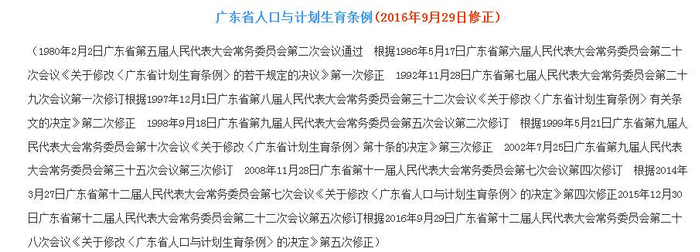 广东目前的社会抚养费征收办法,在《广东省人口与计划生育条例》中有明确规定,2016年元旦全面放开“二孩”后,该条例于2016年9月29日有过一次修正。