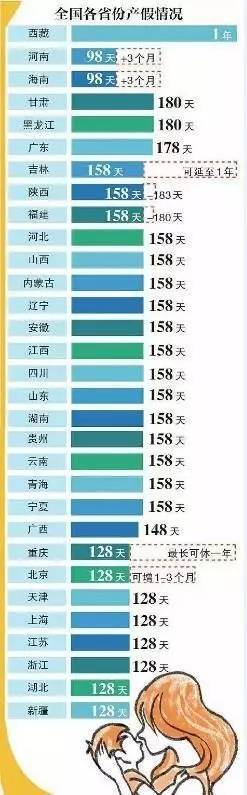 但再长也比不过西藏,女方每胎可享受1年产假(含法定产假)。