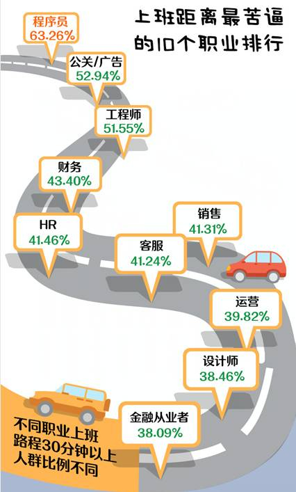 不同职业上班距离排行↓↓↓