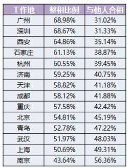 各城市应届生整租比例排名↓↓↓