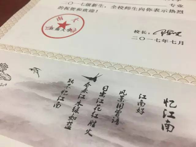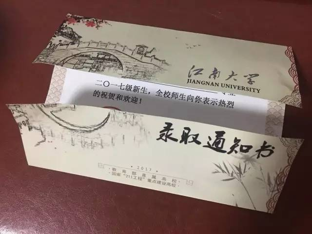 江南大学江南大学2017年录取通知书以“水墨江南”为主题进行设计。