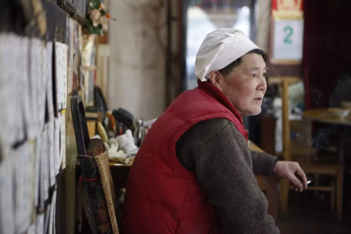 最大的变化是,之前那个端坐在靠墙的四方桌前,头上戴着一顶厨师帽,嘴上永远叼着一根烟的老头不见了。