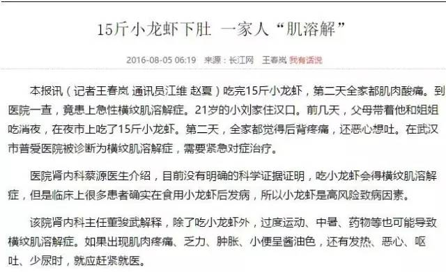 横纹肌溶解综合征,这到底是个什么病?和小龙虾有什么关系吗?
