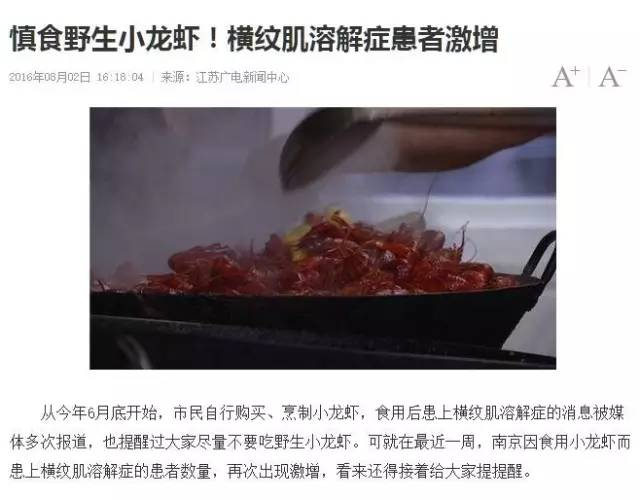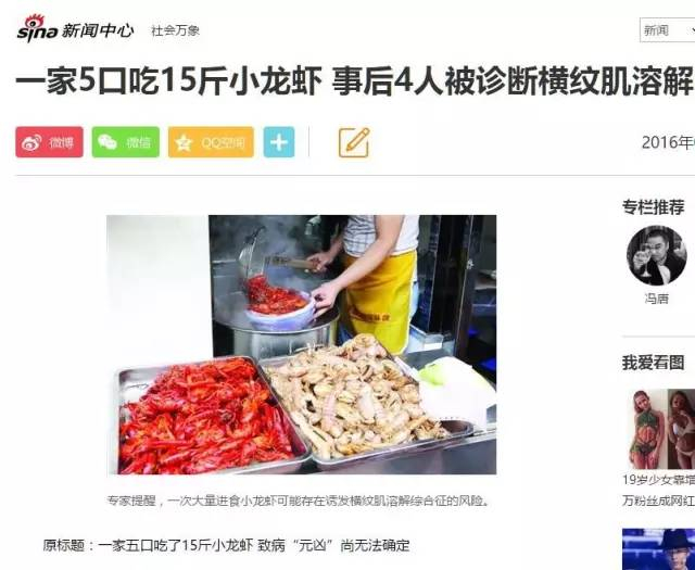 吃小龙虾后出现肌肉损伤,这个不是个例,全国各地都有发生。