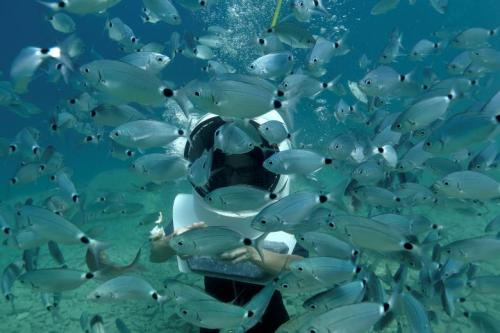 被鱼群包围。(图片来源:路透社)