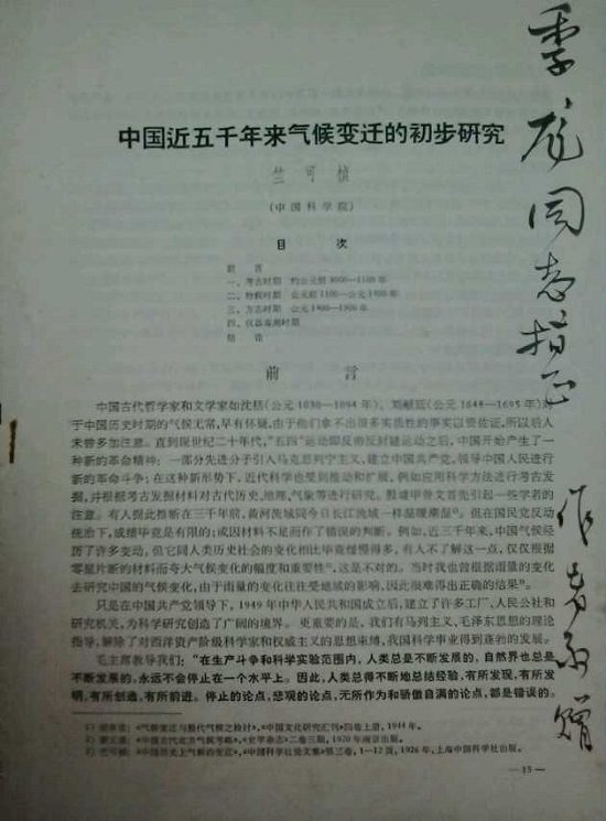 《中国近五千年来气候变迁的初步研究》是历史气候研究中的经典之作,也是历史学领域内最为人熟知的历史气候论文,可能没有之一。