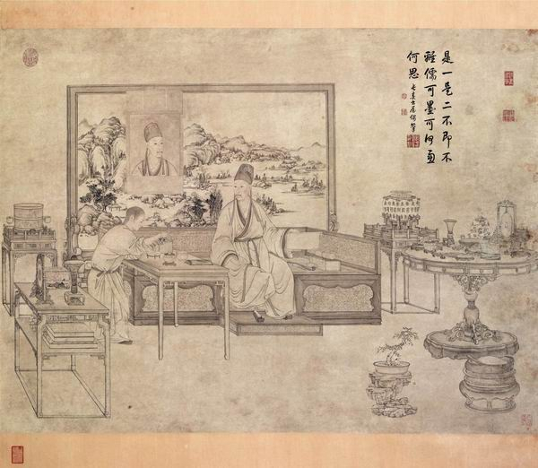 乾隆皇帝爱好文艺,将自己的书房命名为“三希堂”,是对自己的勉励,“三希”即“士希贤,贤希圣,圣希天”,意思是士人希望成为贤人,贤人希望成为圣人,圣人希望成为知天之人。为配合此次展览,馆方在展厅内特意复制了闻名天下的“三希堂”景观,展出乾隆御用的文房四宝:檀香木翠毫笔、青玉三峰笔架、松花石磬纹池砚、碧玉西园雅集图笔筒等,华贵又不失文雅。