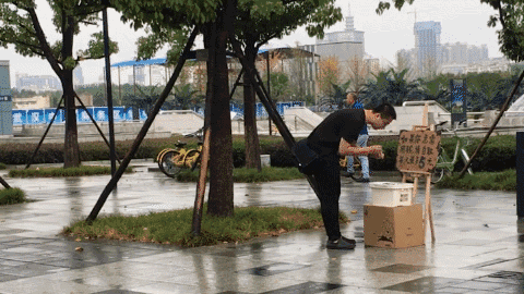 小新近日在湖北武汉的街头看见了这样的箱子,观察、记录了路人的反应: