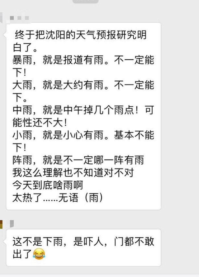 我跟你讲噢,也就是说如果“你认为的小雨”稀里哗啦了一天,但24小时内降雨量累积值达到了10mm-24.9mm的唉,那么,侬再怎么觉得外出不用打伞,我们气象意义上也称之为“中雨”,晓得伐!