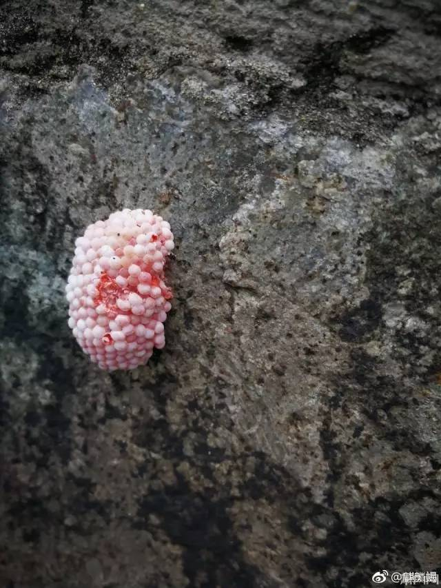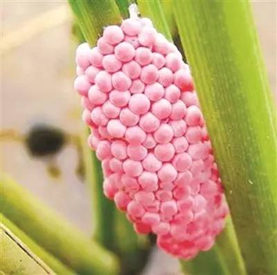 今天,微博网友@麒麟竭 在杭州萧山新塘的一条河边也拍到了福寿螺和它的粉红色的卵。