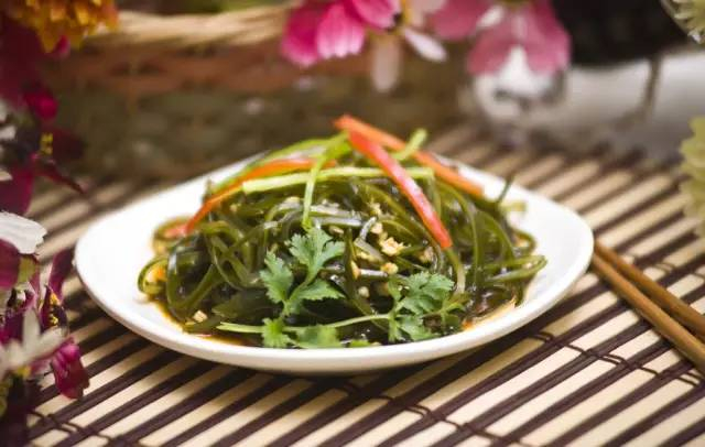 1. 将海带300克洗净,切成细丝后煮半小时捞出放凉;