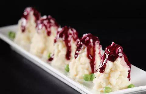 6.最后挤入容器中,淋上蓝莓酱即可,蓝莓山药泥这道凉菜就做好了。