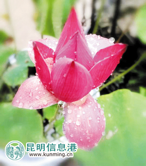 “昆明荷花盛开的时节,恰逢雨季,很多人都认为下雨会把荷花打蔫,淋得不好看,其实不然,这时的荷花,更有着特别的美感。”“河边看柳”说。