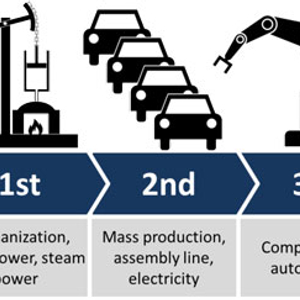 第一次工业革命以蒸汽机的发明为开端,用机器代替了手工劳动,并达到了难以置信的规模。第二次工业革命电力使装配流水线和大批量生产成为可能。计算机的发明带来了第三次工业革命,这使得机器人和机器自动化可以集成到流水线中,以帮助或在某些情况下取代人类工人。