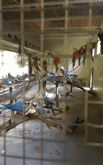 当我打开小家伙房间门的时候,迎接我的是将近200分贝的吼叫声,一只金刚鹦鹉的叫声足以让人震耳欲聋,何况这里是整整28只!(简直就是一出演砸了的“大合唱”啊