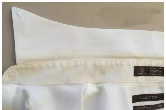白衬衫的领口最容易发黄,用洗衣粉也搓不干净。还有些放在衣柜久了,拿出来有一股旧颜色。