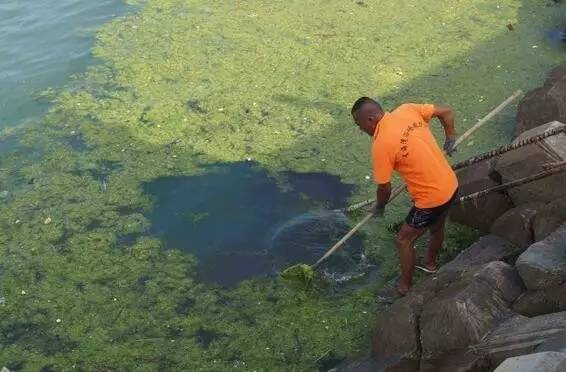 近日,大连星海湾浴场及周边海域突然出现了约千余平方米的绿色海藻,面积之大属近年来罕见,星海湾浴场管理部门专业人员不到 12 个小时的时间里清理出 10 余吨。