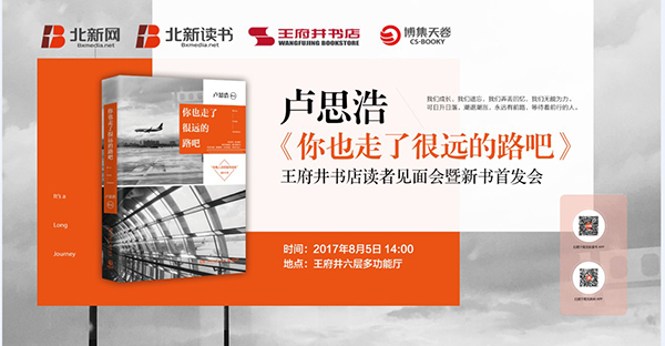 本次活动是卢思浩2017年新作《你也走了很远的路吧》新书首发会暨读者见面会。新书包含16个触动你心的中篇故事,用温暖的笔调,打动万千读者。从这些故事中,你可以看到自己,亦可以读懂别人。8月5日,不需要门票,如果没有座位了,那就坐到我身边来。如果坐不下了,那我就陪你一起站着。如果场地挤不下了,我就到走廊里陪你说会话。如果场馆要熄灯了,而你刚来,就打着手电筒给你写名字。期待我们见面,对彼此说一句,这些年,你也走了很远的路吧,虽然辛苦,但绝不服输。