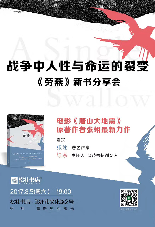 《劳燕》是著名作家、电影《唐山大地震》原著作者张翎的最新力作,本周六,她带着新作与著名书评人绿茶一起,谈谈战争中的人性与命运。
