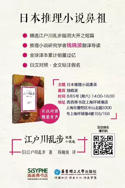 江户川乱步被称为日本推理小说鼻祖,近日,华东理工大学出版社出版了《江户川乱步短篇小说选》,本周六,该书译者、推理小说研究学者钱晓波将与读者一起聊聊这位日本推理小说大师。