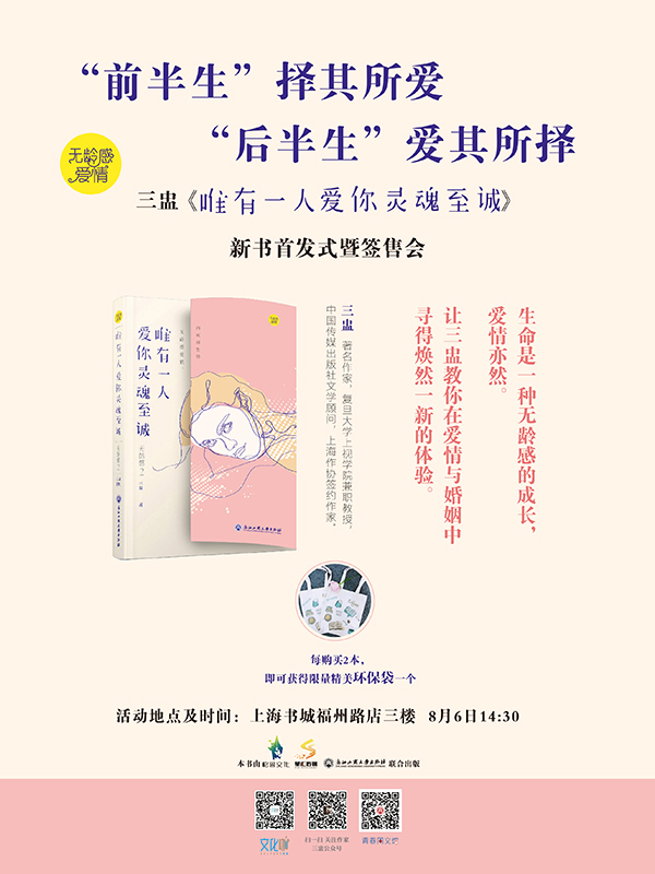 继《生命的每一天都是奇遇》后,“当代海派文学代表人物”三盅又一“无龄感”力作暖心上市。8月6日下午,《无龄感2:唯有一人爱你灵魂至诚》新书首发式暨签售会,听三盅教你怎样在爱情、婚姻中保持“无龄感”的状态。