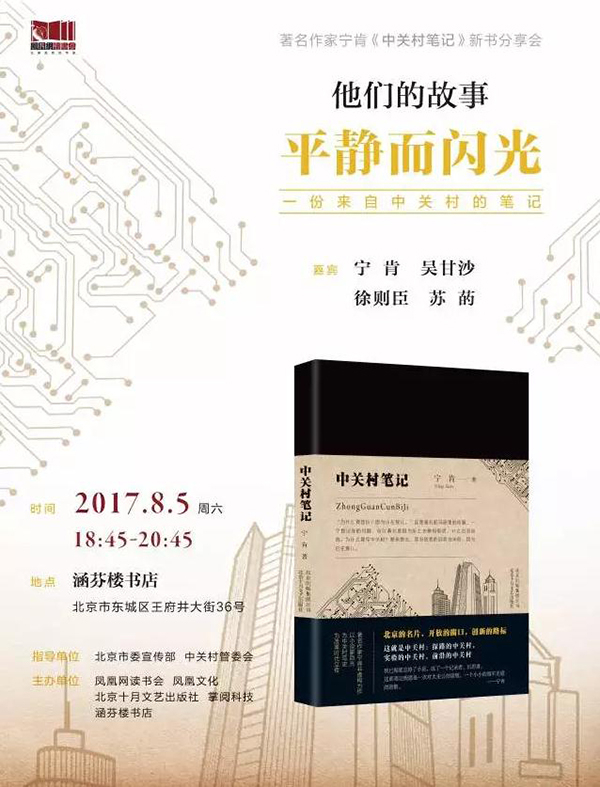人们往往把北京中关村当作中国改革开放的一个缩影,从20世纪最后20年到21世纪的第一个10年,在中国从“中国制造”迈向“中国创造”的进程里,中关村发生的一切印证了一句话:这个国家之所以能够改变世界,是因为它正变得越来越好。日前,著名作家宁肯推出了长篇非虚构作品《中关村笔记》,引发各界广泛关注,作为一个被认为“桀骜不驯”的小说家,宁肯的每一次写作都把自己逼到“悬崖”上,这一次他为中关村带来了什么?8月5日晚,一起到涵芬楼听听他的说法。